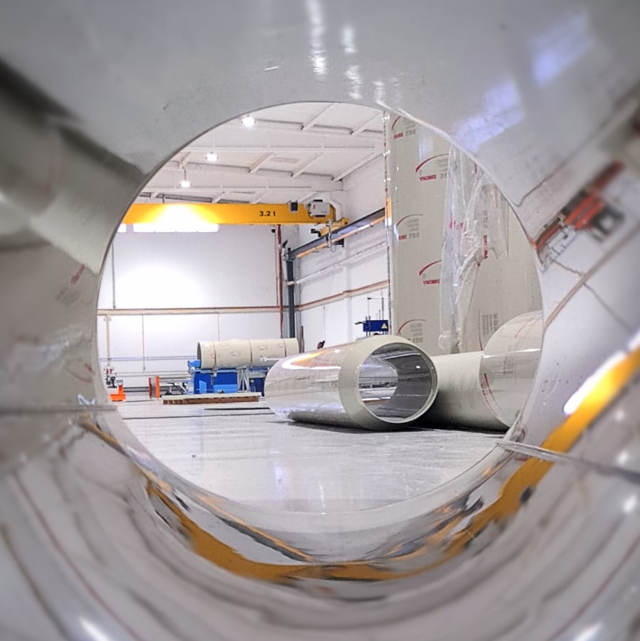 Ventilation systems composed of extraduded ducts or manufactured by cold-rolled PP-H or PE-100 sheets with automatic welding. Construction thicknesses are standardised according to diameter.